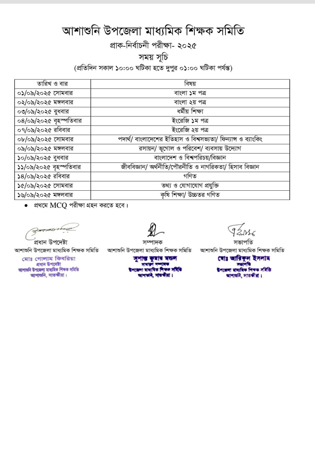 প্রাক-নির্বাচনী পরীক্ষার রুটিন-২০২৫