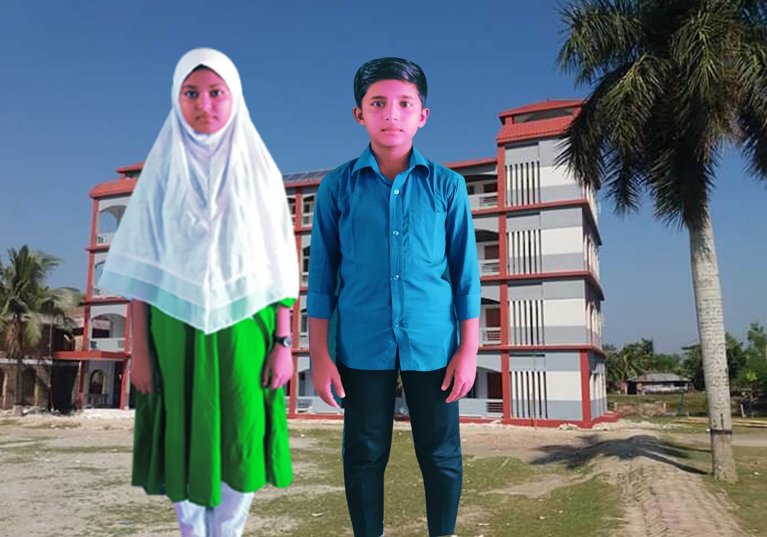 ছেলেদের: নেভি বুলু প্যান্ট ও ছাই রং এর জামা।